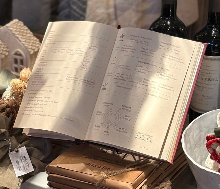 El Libro de Cata te guía paso a paso para registrar aromas, sabores y sensaciones para llevar un registro de cada vino que probas. Una herramienta elegante y práctica para aprender, recordar y compartir cada vino con confianza.